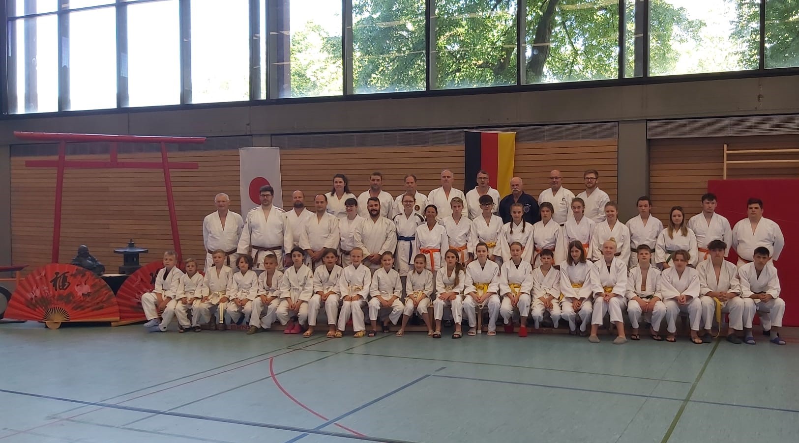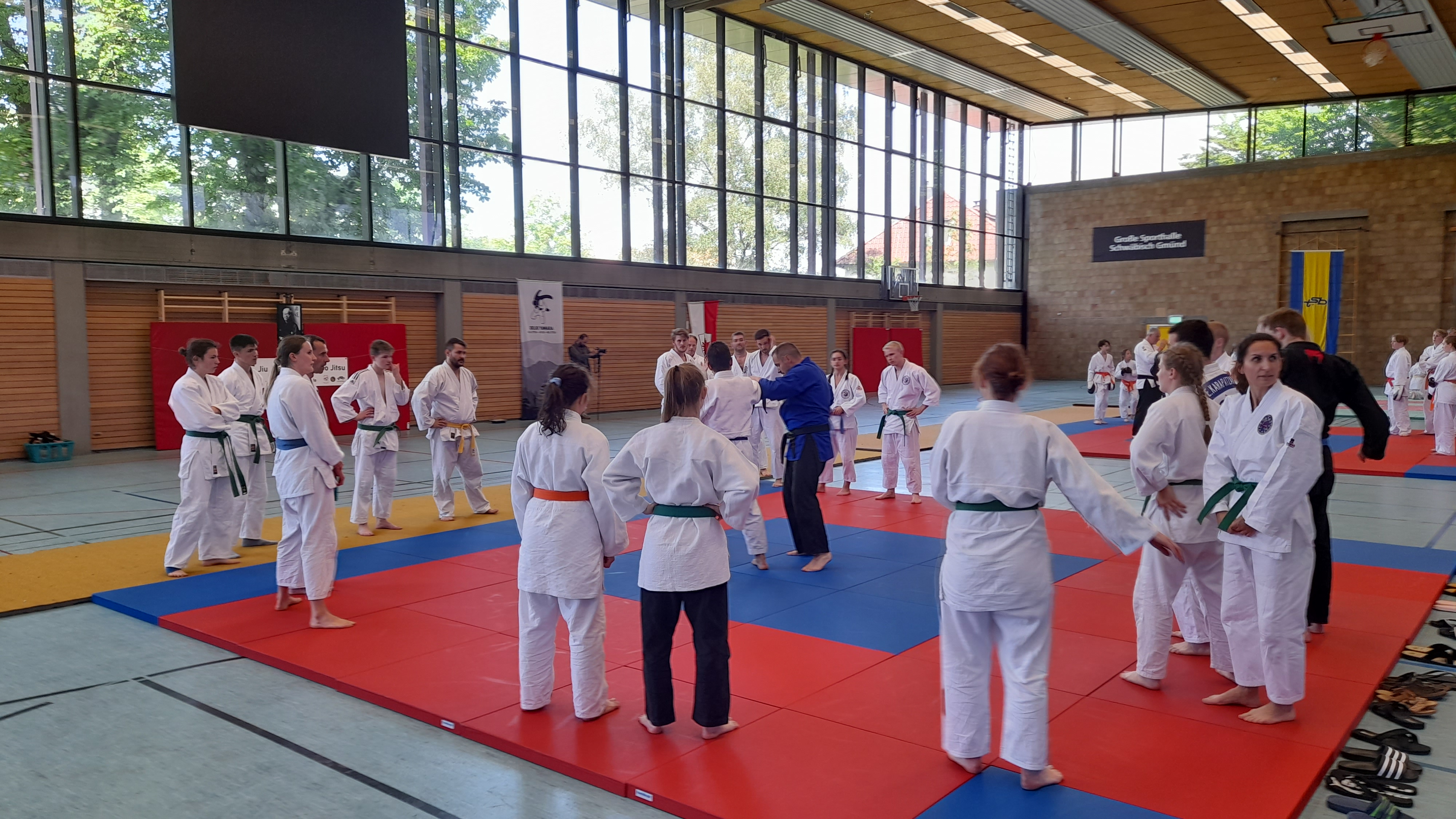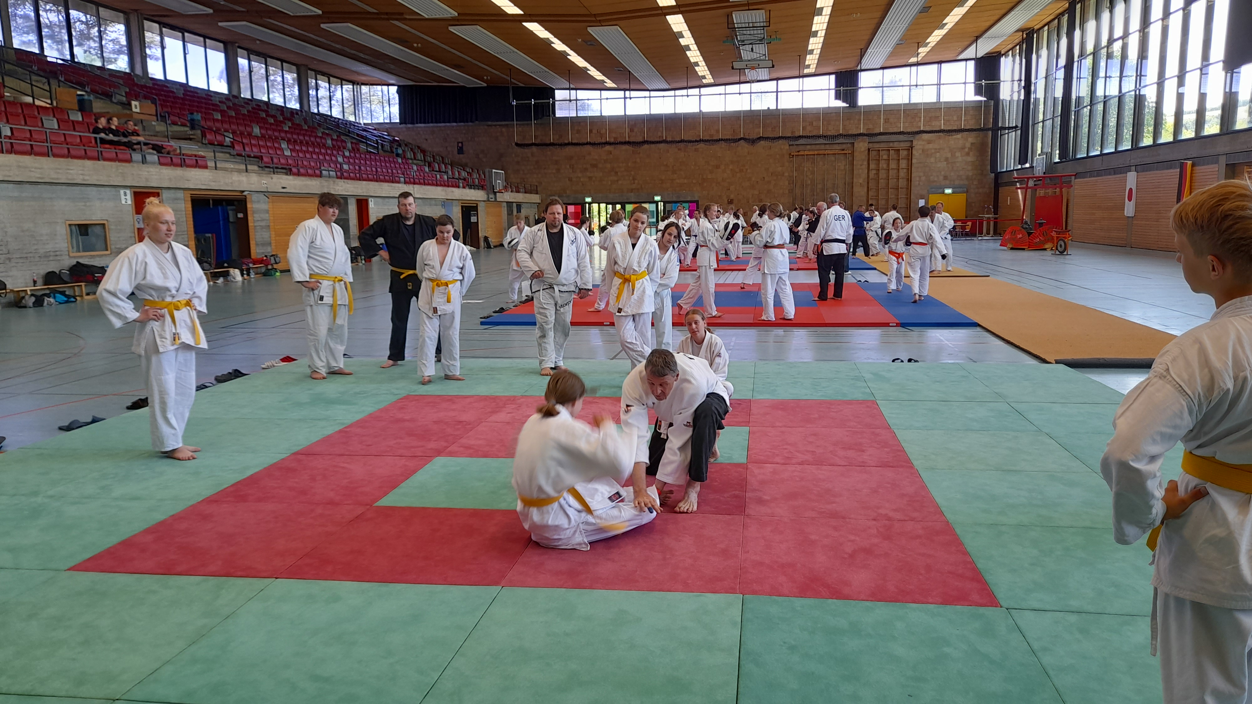 Im Anschluss gab Helmut Schauaus den Startschuss zu einem Lehrgang bei welchem jeder Budoka auf seine Kosten kam. Abteilungsleiter des Dojo Yawara Daniel Requard startete mit einem gemeinsamen Aufwärmen, bevor sich die Teilnehmer ihrer Graduierung entsprechend auf die 5 Mattenflächen verteilten.