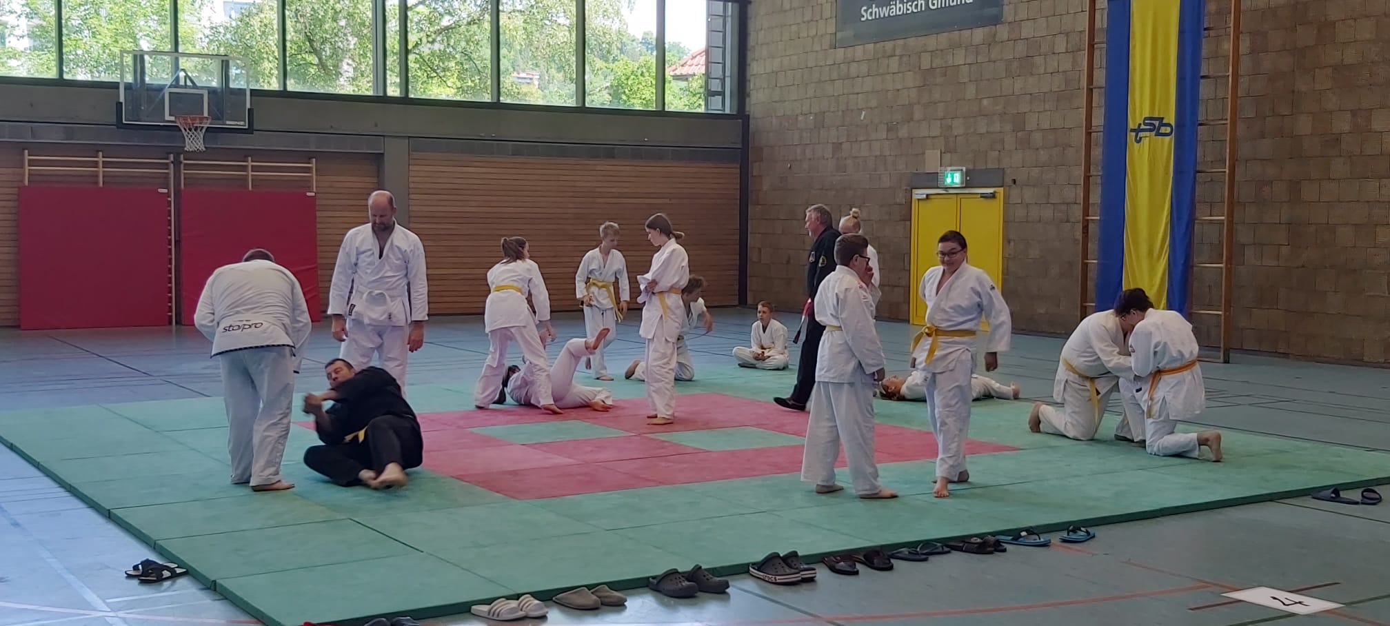 Ein besonderer Gruß galt Sepp Oberhollenzer 8. Dan Ju Jitsu, welcher vor 40 Jahren das Dojo Yawara gründete und somit das Jiu-jitsu in Schwäbisch Gmünd etablierte.