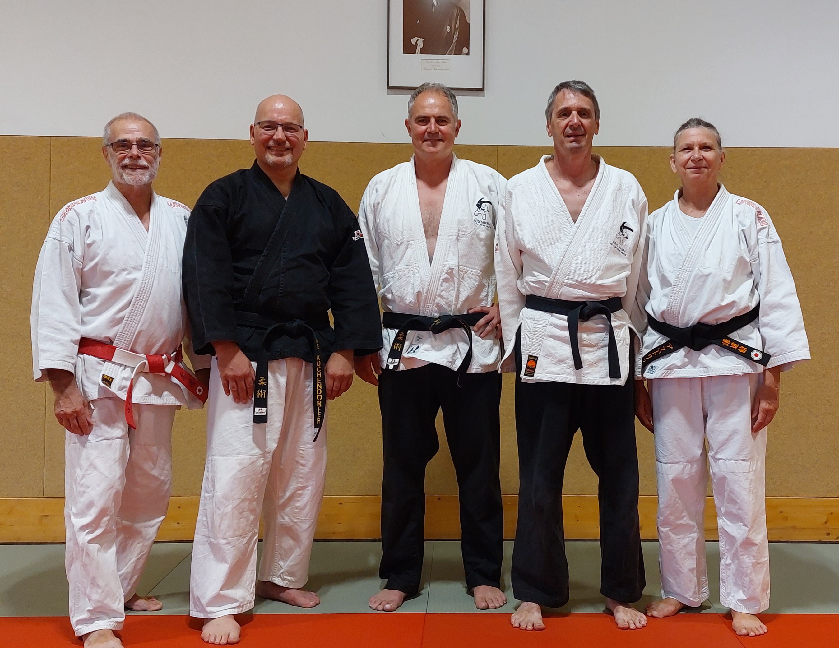 Roland, Helmut und ich fuhren am 24.06. nach Ludwigsburg in das Dojo das MTV 1846 e.V. und trafen uns mit drei weiteren Jiuka in Ludwigsburg bei Jacques Cosson (WJV-Bauftragter Katawesen, EBo-No-Kata teacher's license) um die EBo-No-Kata zu vertiefen. Jacques und sein Uke Astrid führten uns hier durch die Bewegungen und Gegenbewegungen der Kata. Hierbei wurden viele Verständnisfragen in den Bewegungsabläufen beantwortet. Nach intensiven 4,5 Stunden waren wir durch alle Techniken der Kata durch und nahmen viele Informationen mit, die wir im Training umzusetzen gedenken. Wir freuen uns schon auf den nächsten Lehrgang.