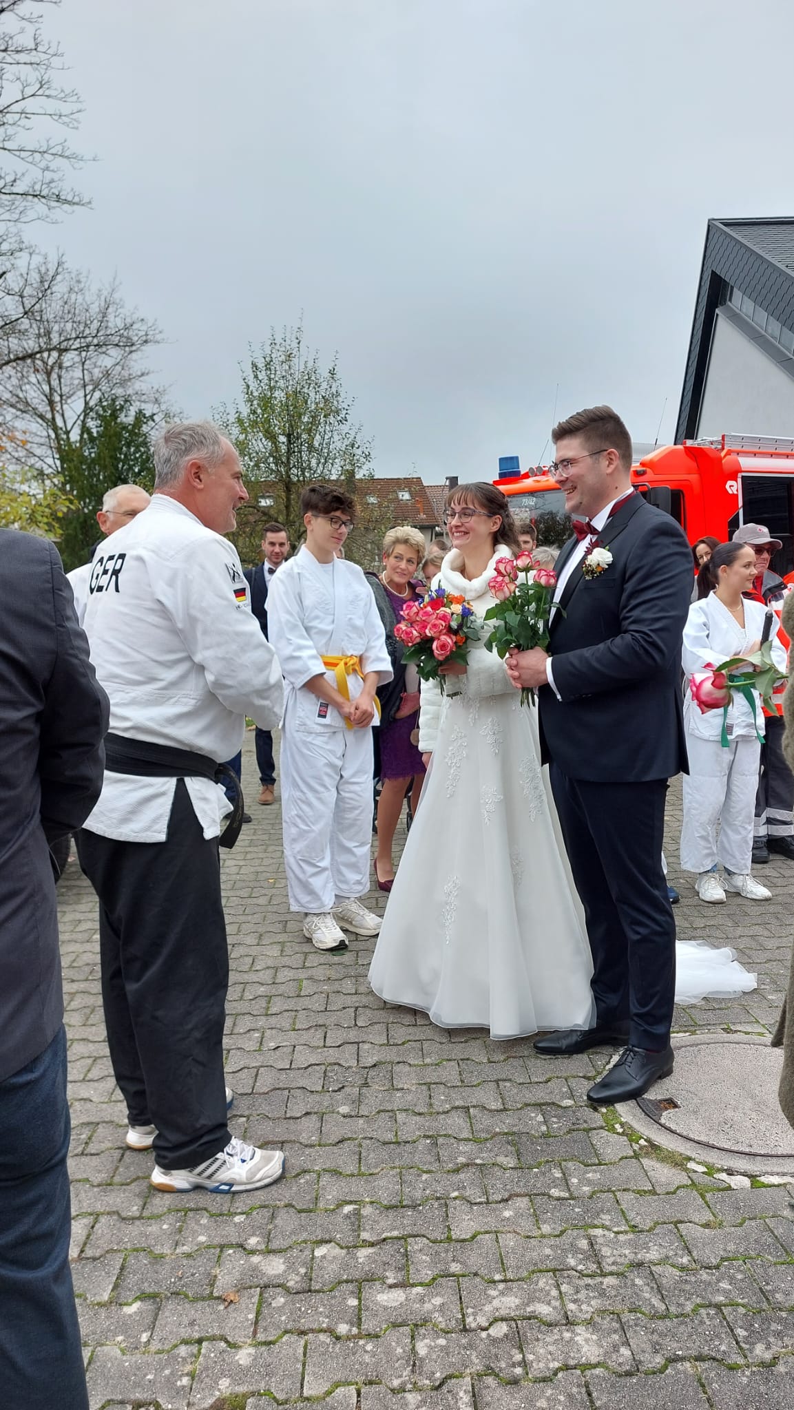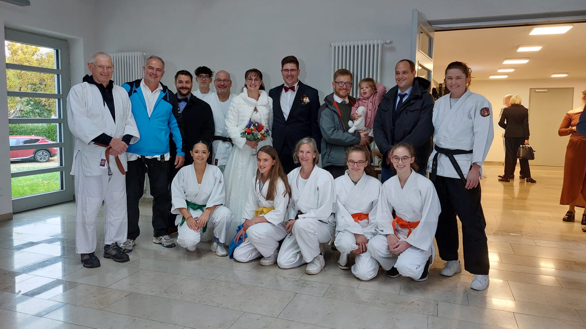 Das Dojo Yawara stand am 4.11.2023 für unsere Julia und unseren Matthias am Sektempfang ihrer Hochzeit spalier.