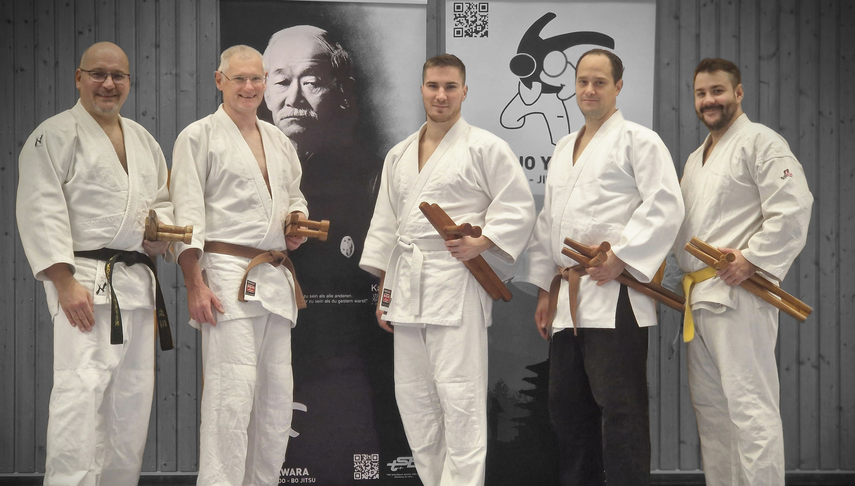 Beim diesjährigen Workshop am 17.12.2022 was das Ziel die Matayoshi no tonfa ichi und ni zu lernen. Die Tonfa ist eine Kobudowaffe, deren Umgang nicht einfach ist und damit auch die Anmeldungen zum Workshop überschaubar waren. Nach kurzer Einführung der Waffe ging es dann auch gleich los mit den Grundbewegungen der Kata, die dann immer weiter ausgebaut wurden und letztendlich in der Kata endeten. Wir unterschätzten etwas die Zeit, sodass wir nur die erste Kata vollständig und die zweite Kata zum Teil üben konnten. Die gut vier Stunden Tonfatraining forderten Ihren Tribut an der Konzentration, Ausdauer und auch ein paar Blasen an den Händen. Am Ende waren sich jedoch alle einig, dass wir das so nicht stehen lassen und deshalb im Frühjahr den Workshop und die Katas wieder angehen wollen.